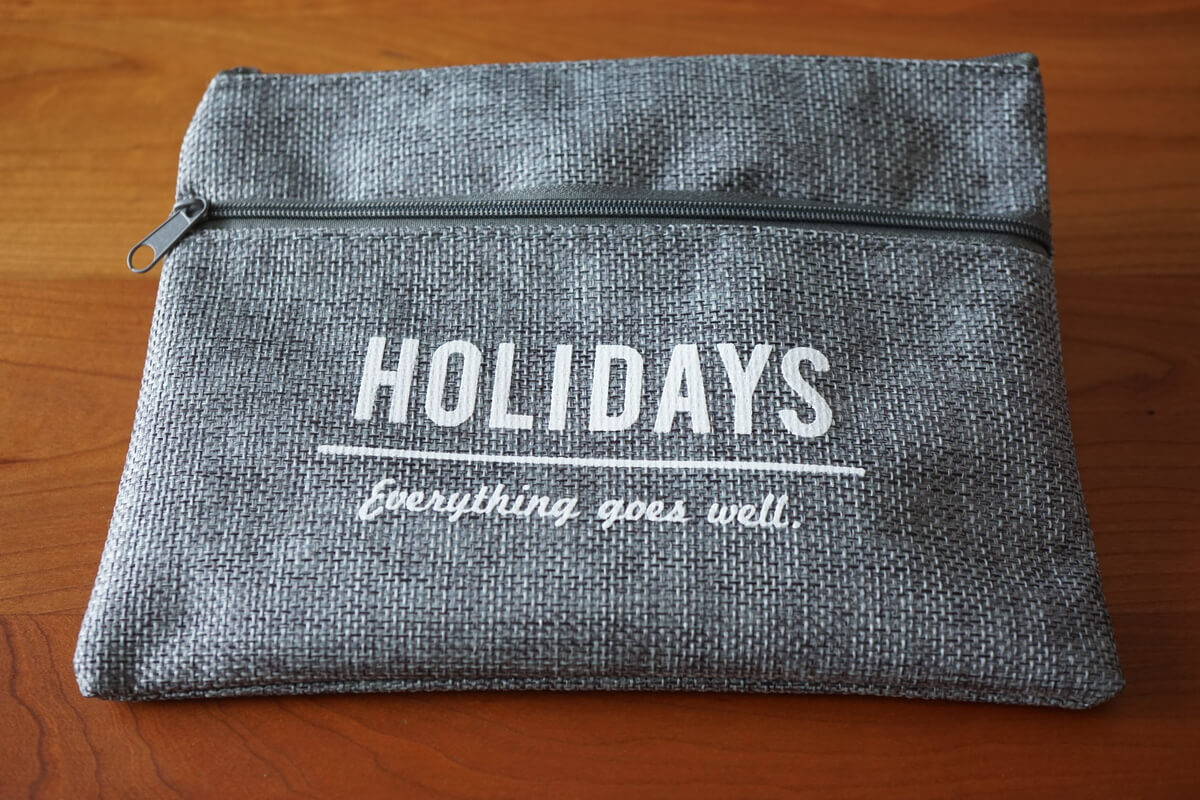 このような形のWファスナーのポーチは保険証やお薬手帳、病院の診察券を入れるのにぴったりなのでいつも100均で購入しています。