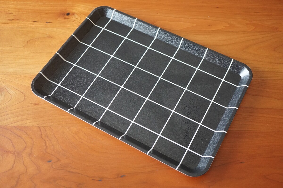 ミニトレーはちょっとしたものを運ぶのにとても便利なので、100均でいつも購入しています。