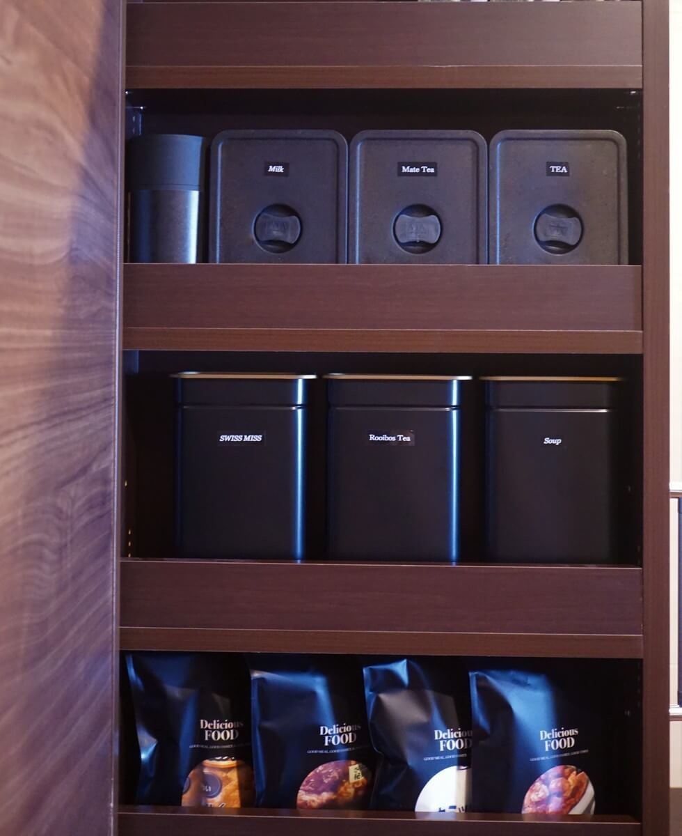 我が家では未開封のホットケーキミックスやストック用の調味料を袋のまま入れています。