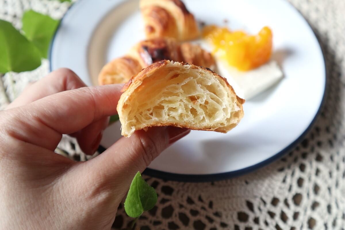 お手頃価格のクロワッサンなのにしっかり層になっております。 表面はサクッ中はしっとりで美味しい。