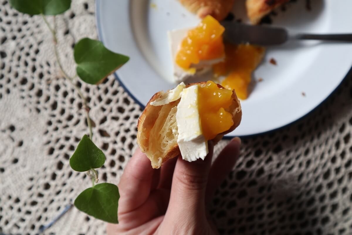 商品名に“スイート”とあるだけあってちょっと甘めなクロワッサンです。 クリームチーズの酸味と合います。 マンゴージャムを焦るとさっぱりと食べられるのでお勧めです。