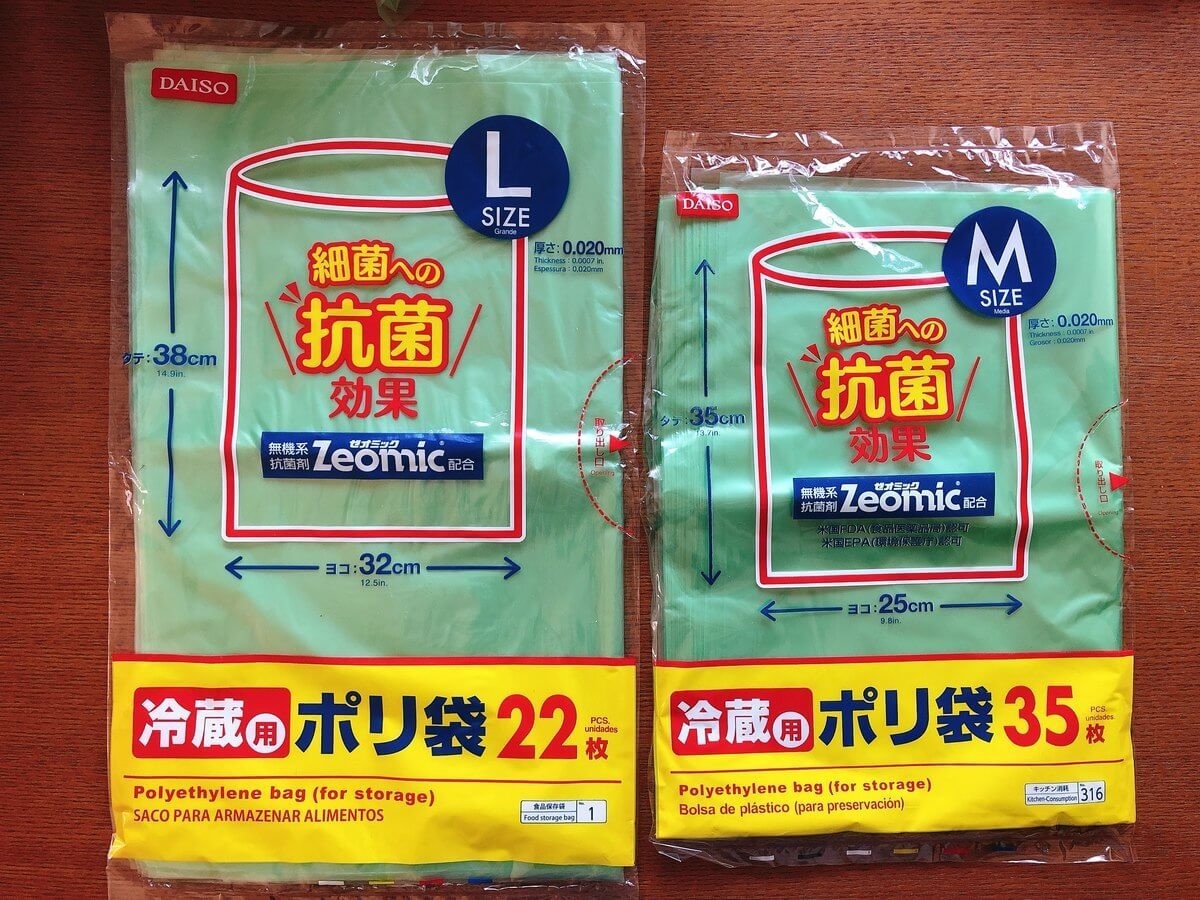 冷蔵用ポリ袋(L)22枚入り (M)35枚入り (Daiso購入品)