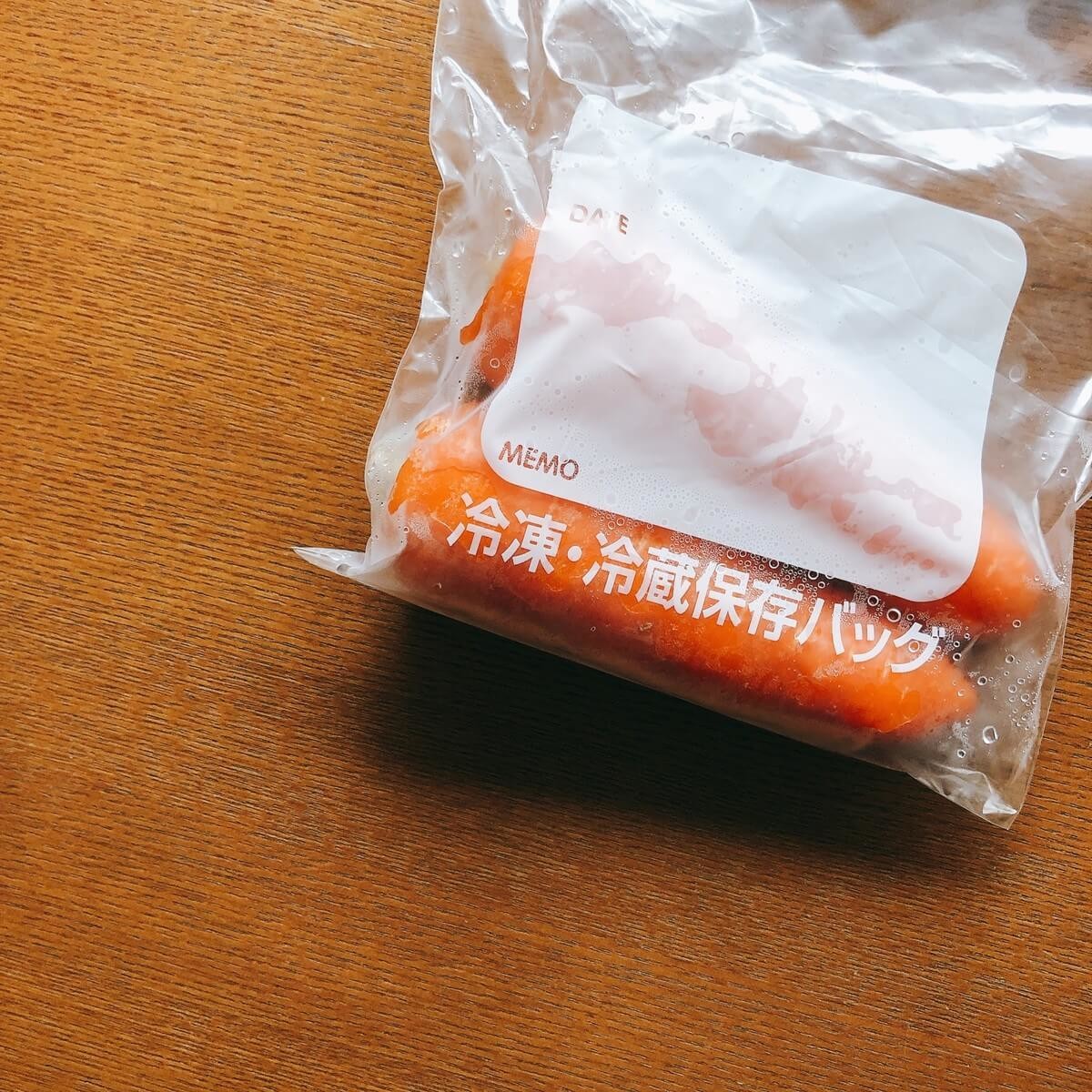 買ってきたお肉は、そのまま食べる分と冷凍する分に分けます。から揚げなど下味を付けて冷凍しておけば更に時短にもなるので下味冷凍にも大活躍の冷凍用保存袋。