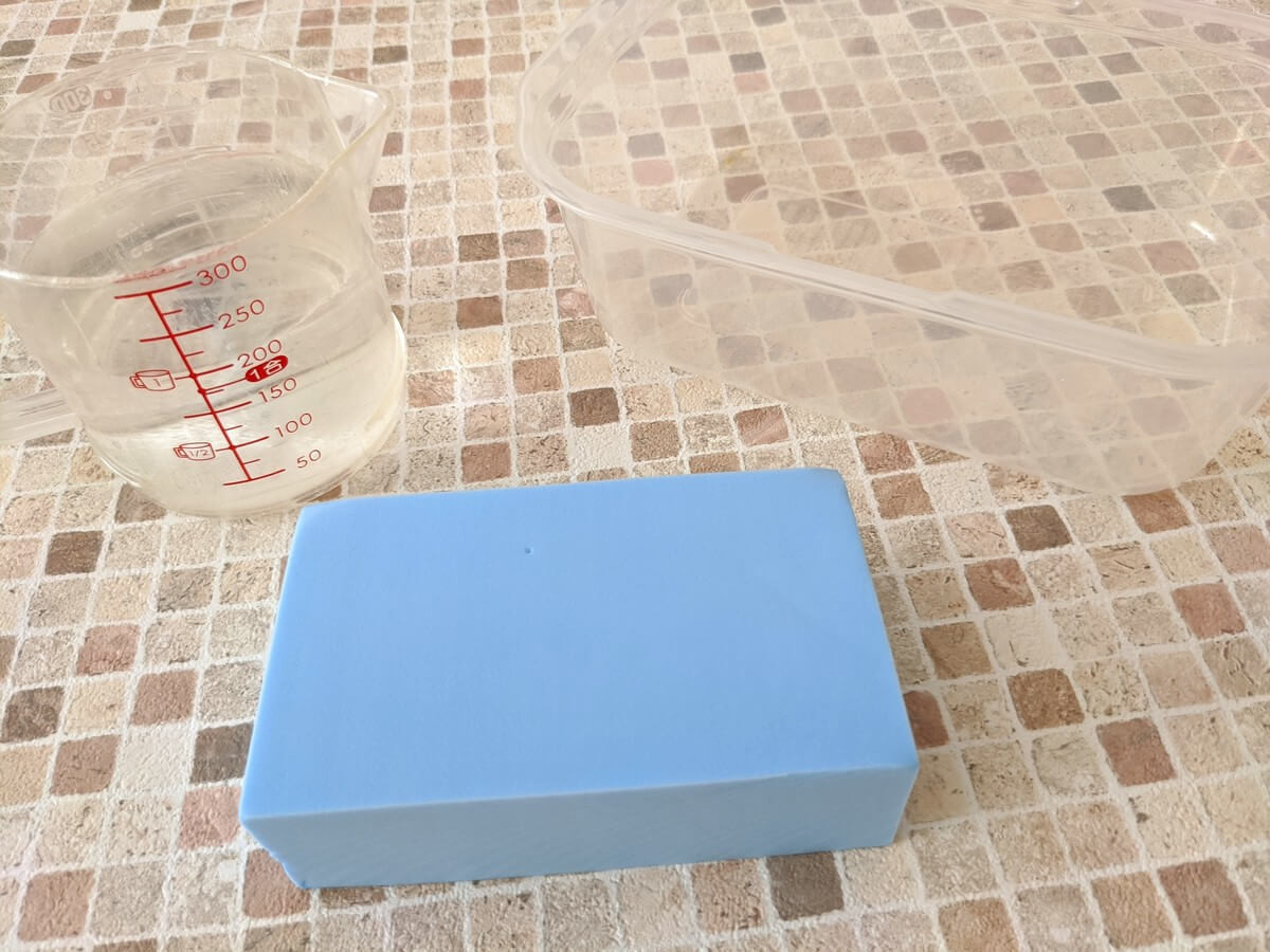 容器に水を入れ、そこに超吸水スポンジを浸します。