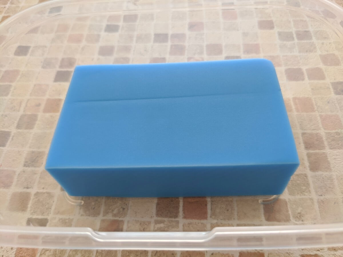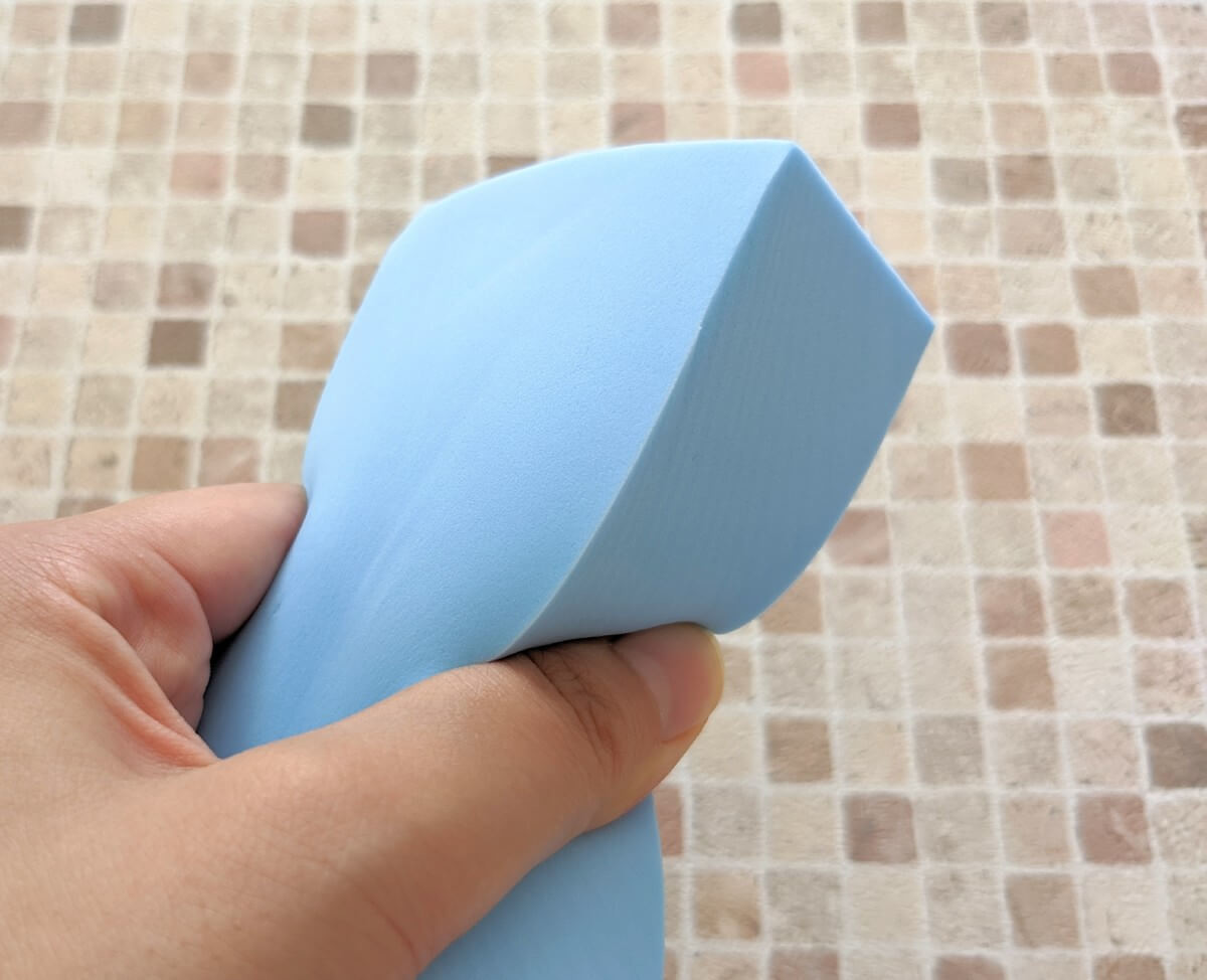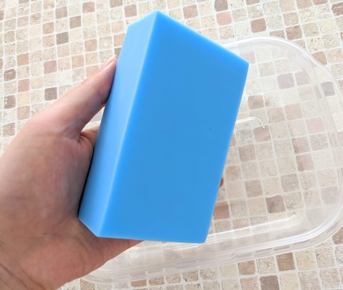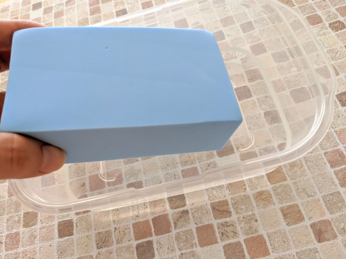 こちらは乾燥すると硬くなってしまうので、使用する前に水に浸して柔らかい状態にし、その後スポンジをよく絞ってから使います。 手のひらサイズでカットする必要はありませんでしたが、大きいものだと好きな形にカットすることも可能です。