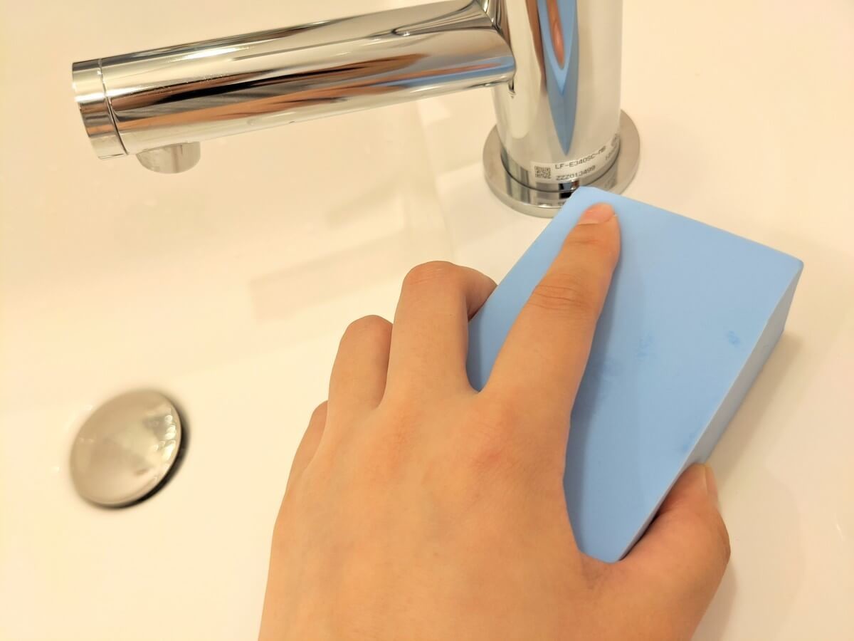 我が家では子どもが洗面台で顔や手を洗うと、必ずと言っていいほど周辺がびちゃびちゃになります。 そんなときも超吸水スポンジがあれば、ササッと瞬時に吸い取ってくれるので助かります。