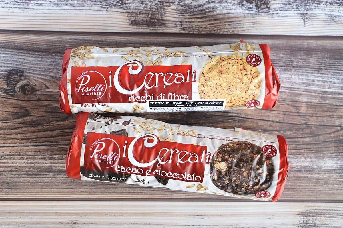 チョコ&ココアとヘーゼルナッツのグラノーラビスケットは22枚入り、ザクザクオーツ&ホールグレインビスケットは18枚入りです。