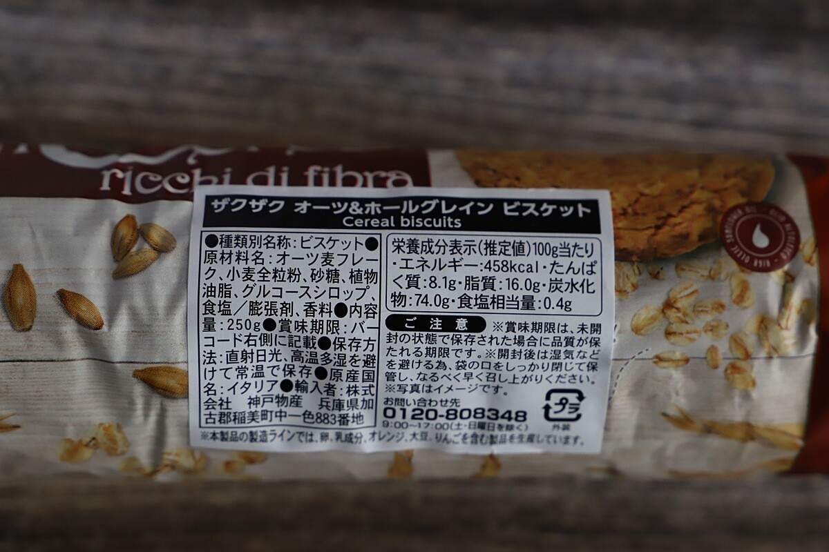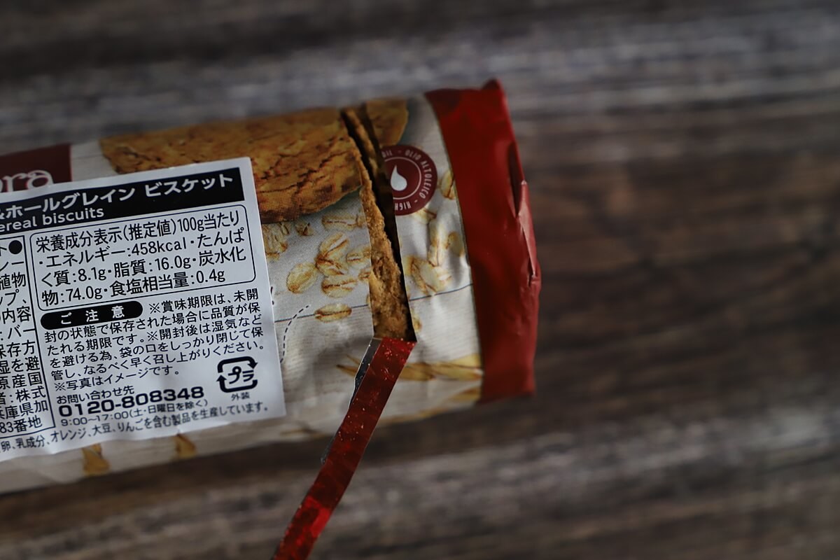 私が通う店舗ではしばらくの間、写真上の「ザクザクオーツ&ホールグレインビスケット」しか陳列されていませんでした。入荷されるといつもあっという間に完売になってしまいます。