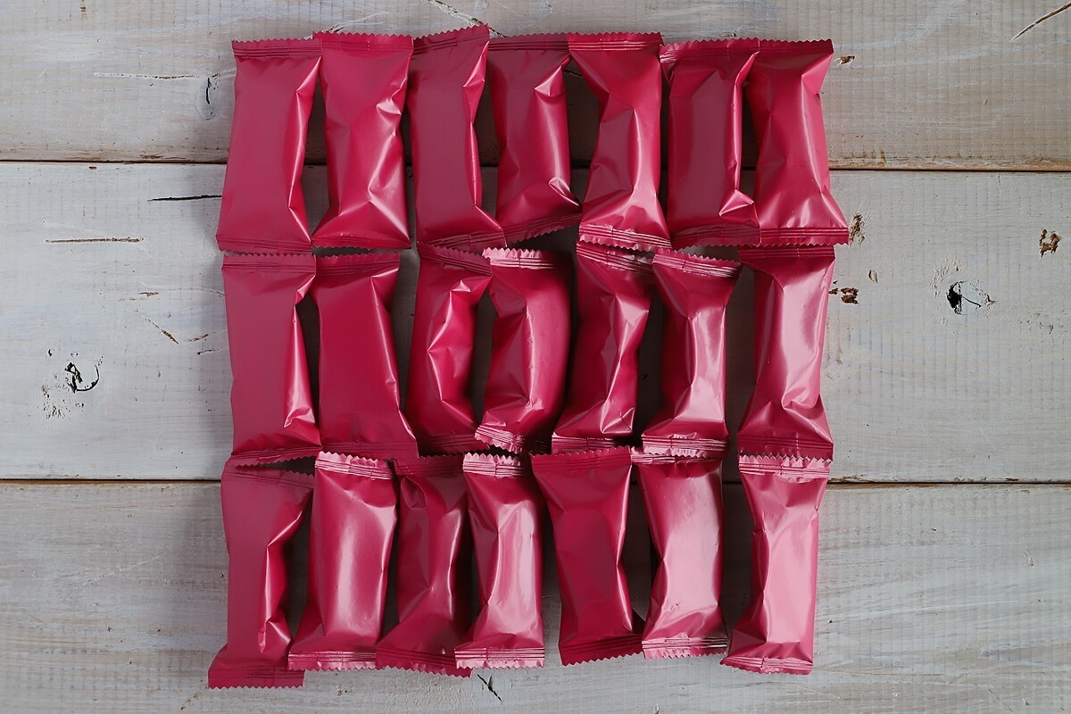 個包装の包みがピンク!パッケージからは金や銀を想像してしまっていたので意外過ぎる色に驚きました。