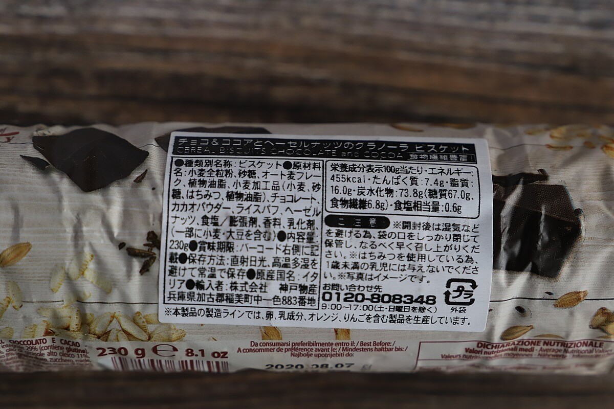 イタリア産 チョコ&ココアとヘーゼルナッツのグラノーラビスケット