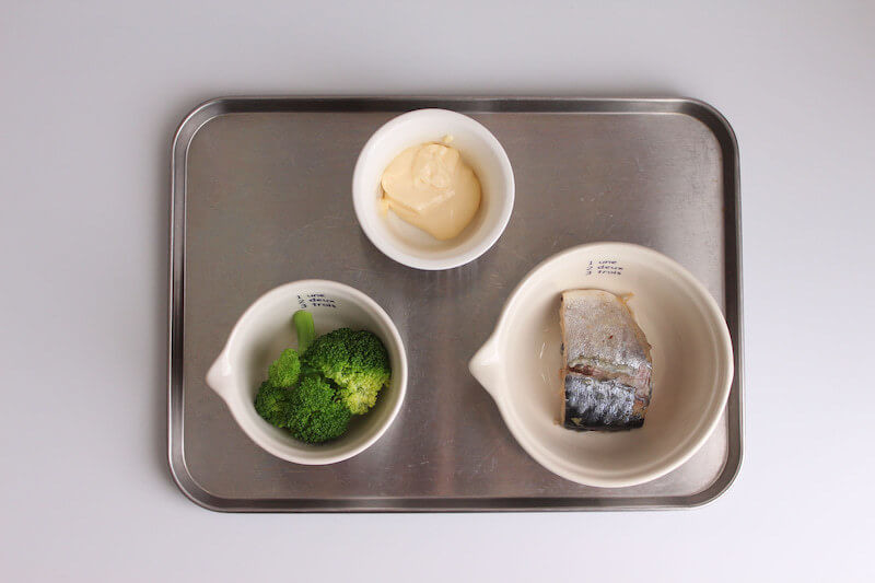 サバは、スプーンなどでつぶし、ブロッコリーは小さめにカットして
