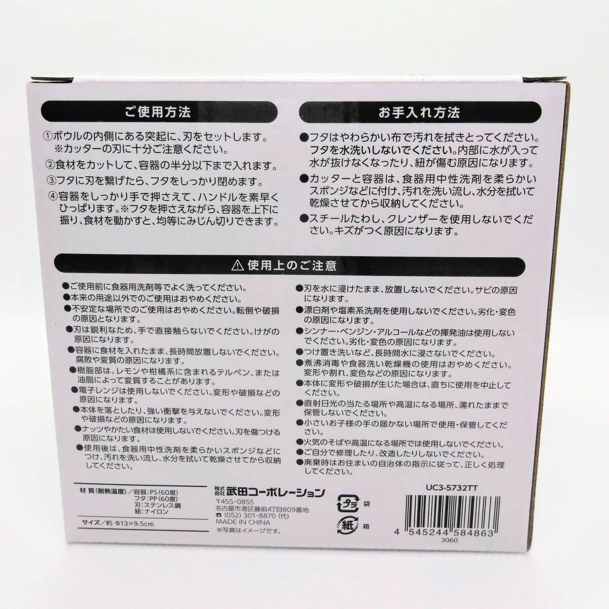 使用方法は、容器に刃をセットして、食材を入れてフタをして、ハンドルをひっぱるだけ!