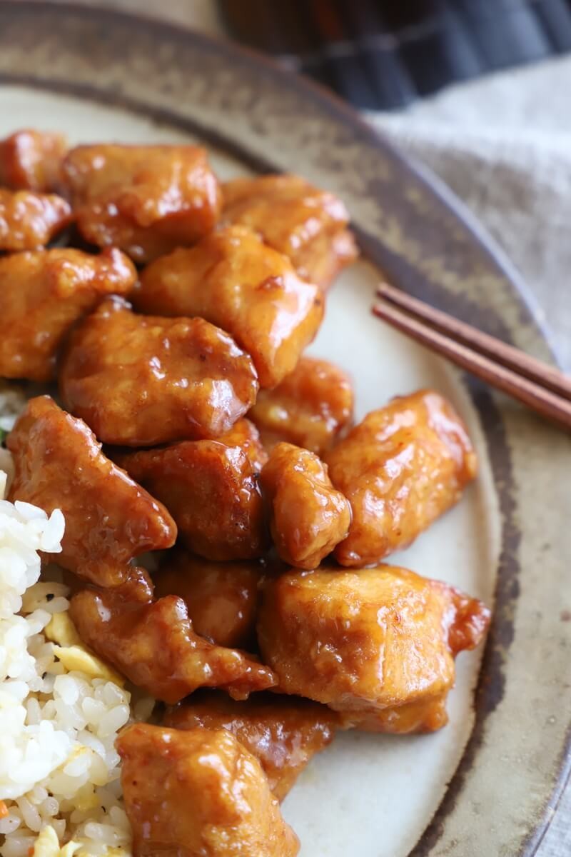 「鶏の唐揚げに甘酸っぱいオレンジ風味のソースを絡めて作るアメリカ風中華料理です」
