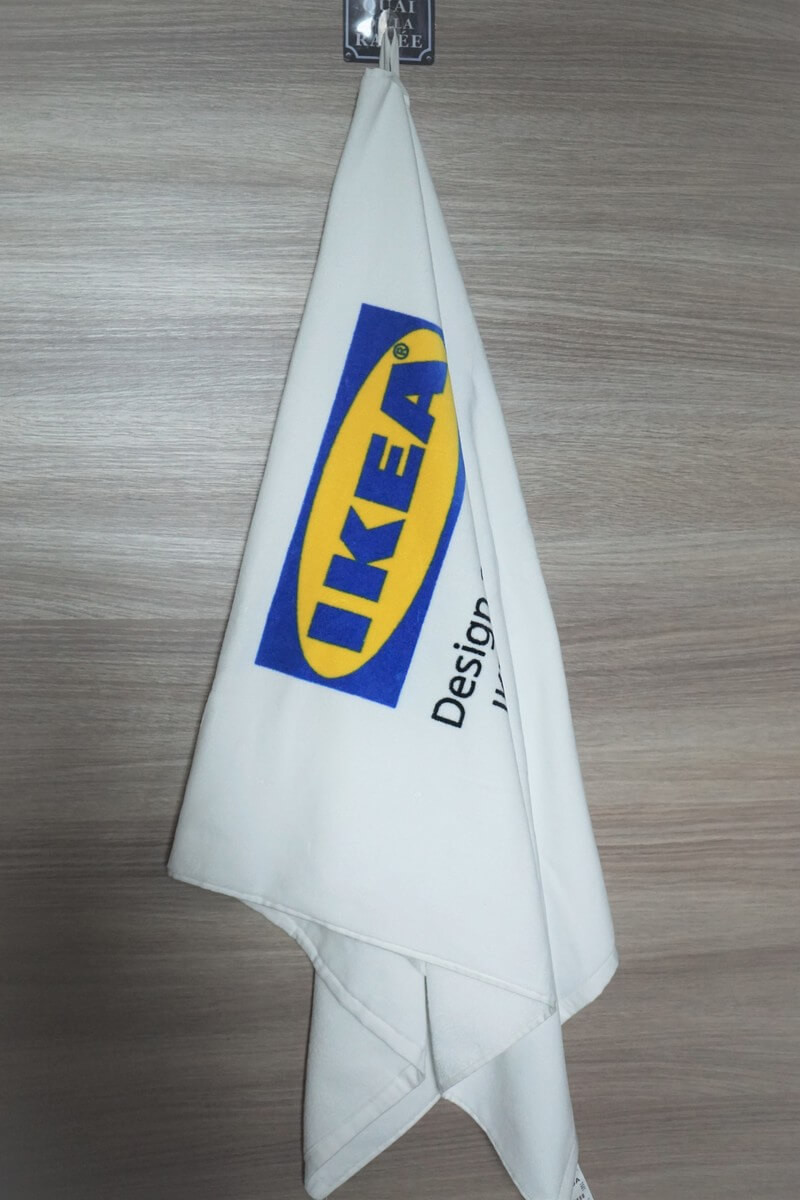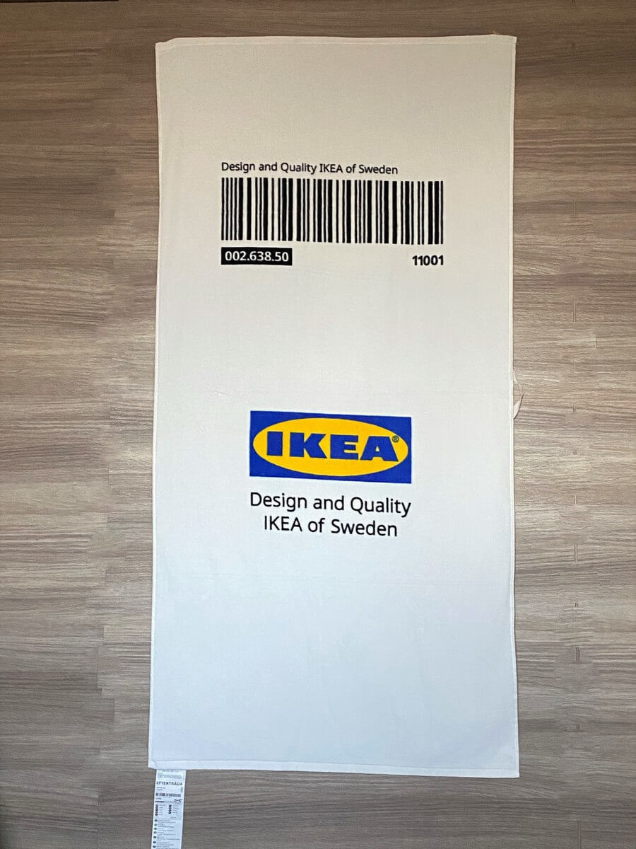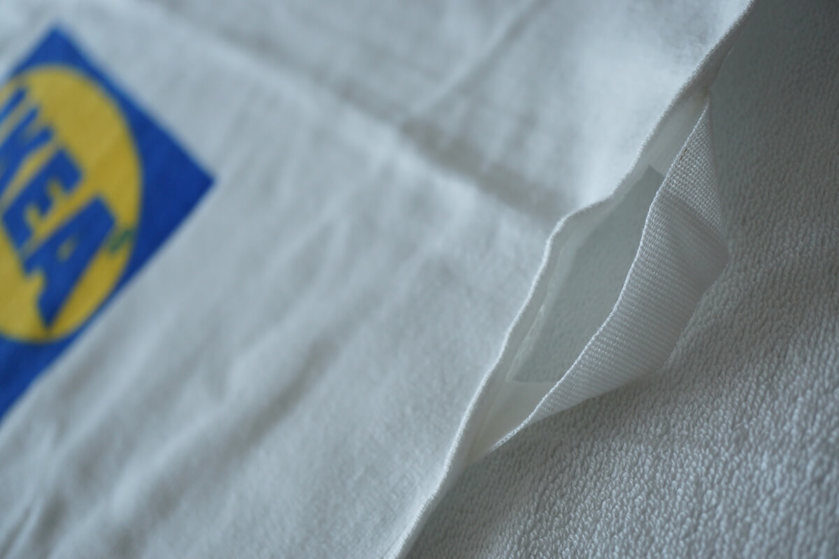 シンプルな白い生地なのでバーコードがとても引き立ち、一見IKEAのものと判らないけれど、背中を見るとIKEAのロゴがしっかりプリントされているところがお気に入りポイントだそうです。