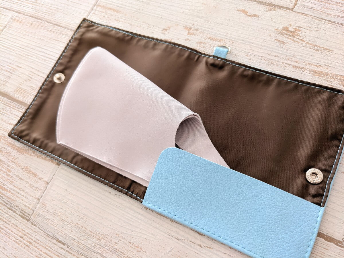 カラーは全部で12種類あり、私は爽やかなライトブルーを選びました。 上品さを感じさせる、まさに大人の女性にふさわしいマスクケースだと思います。