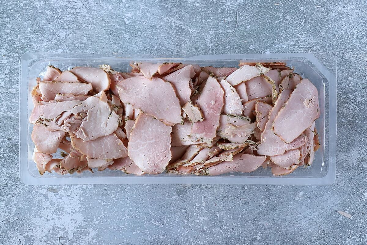 1~2ミリほどの厚さの、程よい大きさで、そしてとても良い色をしたローストポークが沢山入っています。