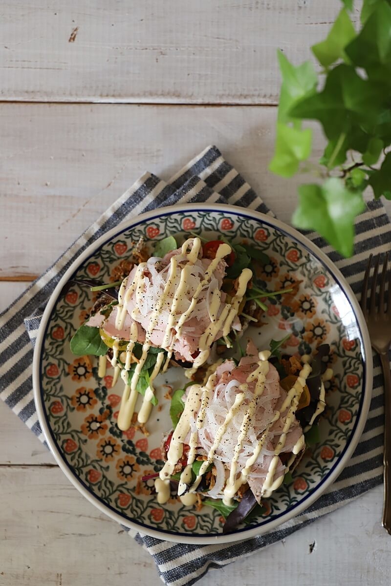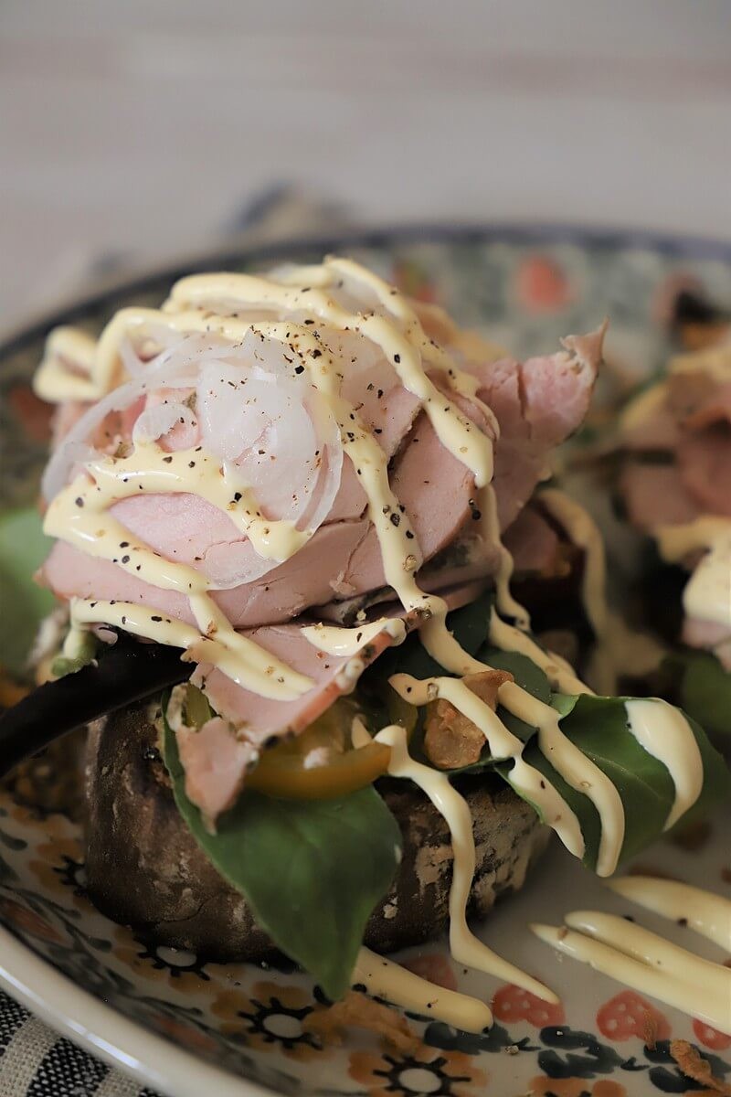 ローストポークをたっぷりと使い、オープンサンドを作ってみました。