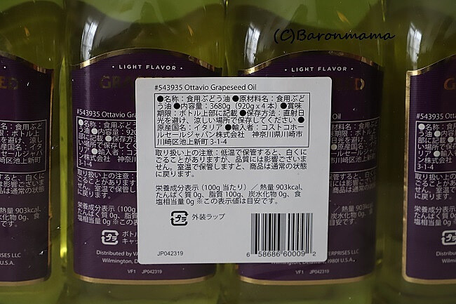 私調べでは、グレープシードオイルで920gもの容量で、ここまで低価格なものはないのではないかと思います。