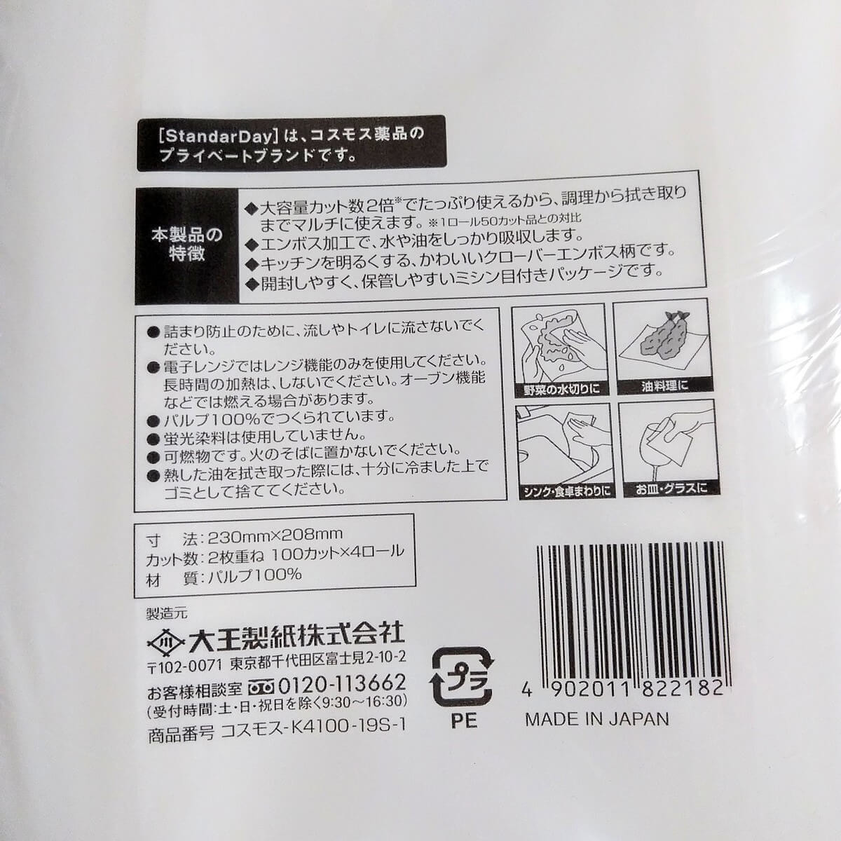 こちらもティッシュペーパーと同じで、製造元が「大王製紙」さんなので使い心地・品質は問題なく安心できます。