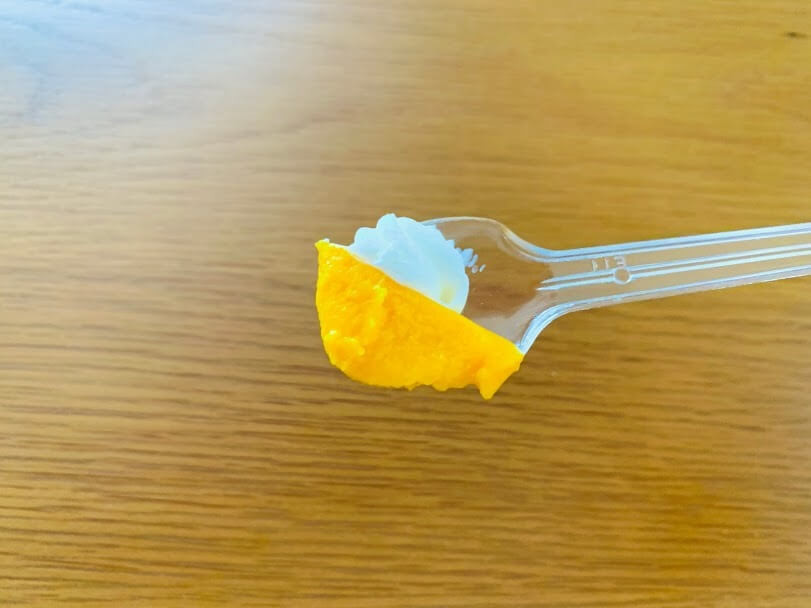 このホイップも名わき役その②。こちらもこのかぼちゃプリンを完成させるのに無くてはならない存在です。