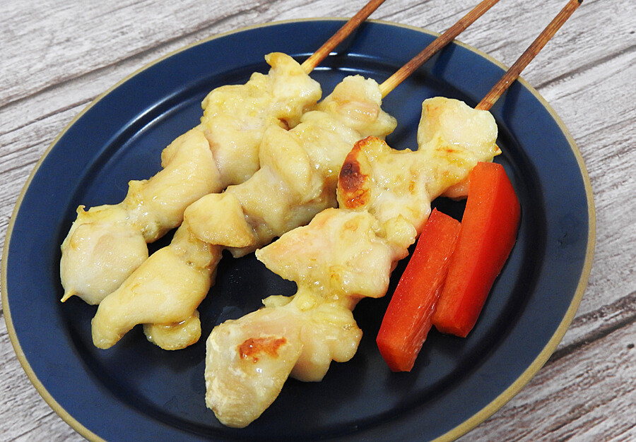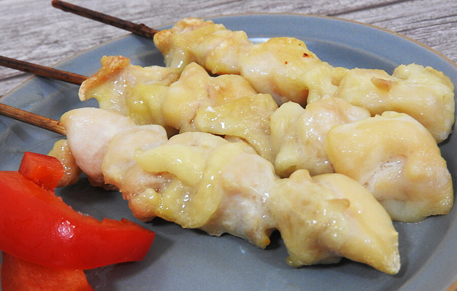 急いでいる場合は、電子レンジで鶏皮串を解凍してから、フライパンで片面1分ずつ焼いたら完成です。