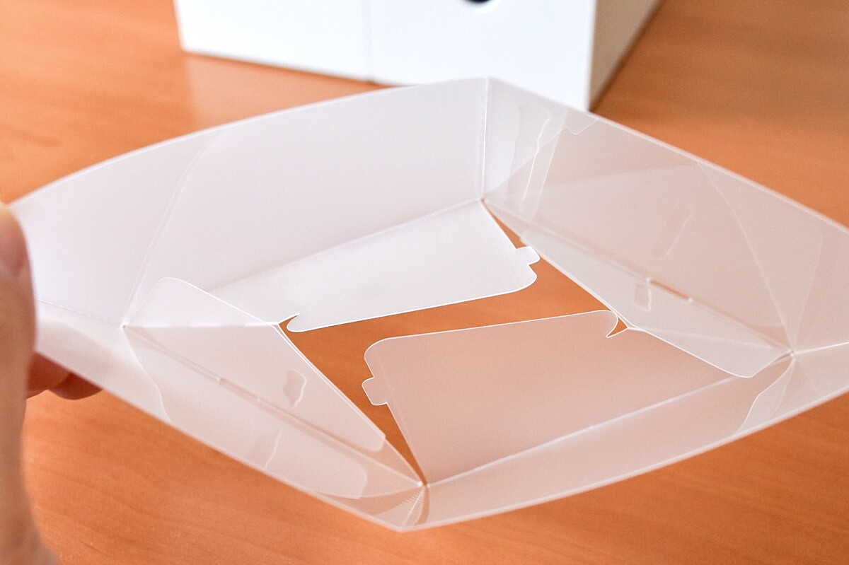シートを開き、両脇にあるつまみを差し込めばボックス型に。