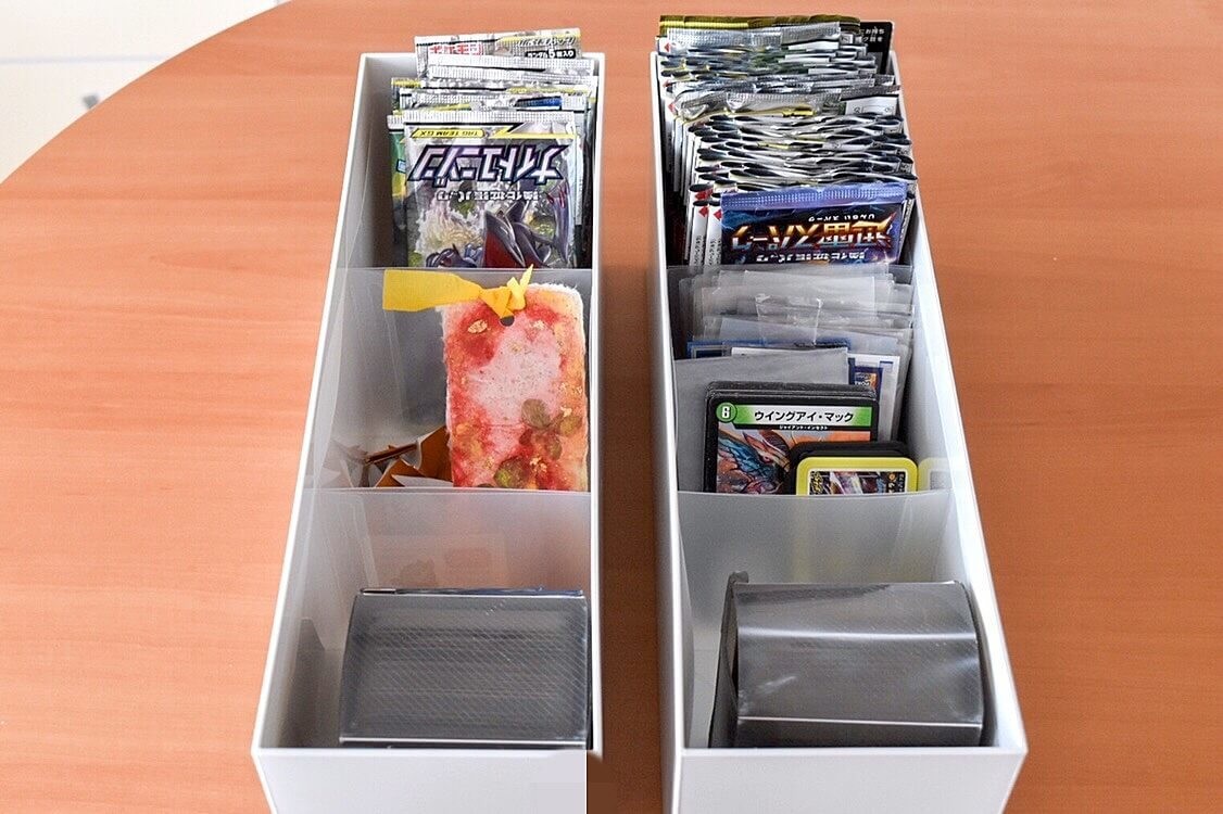 例えば、子ども部屋では細々したおもちゃやトレーディングカード、文具を収納。