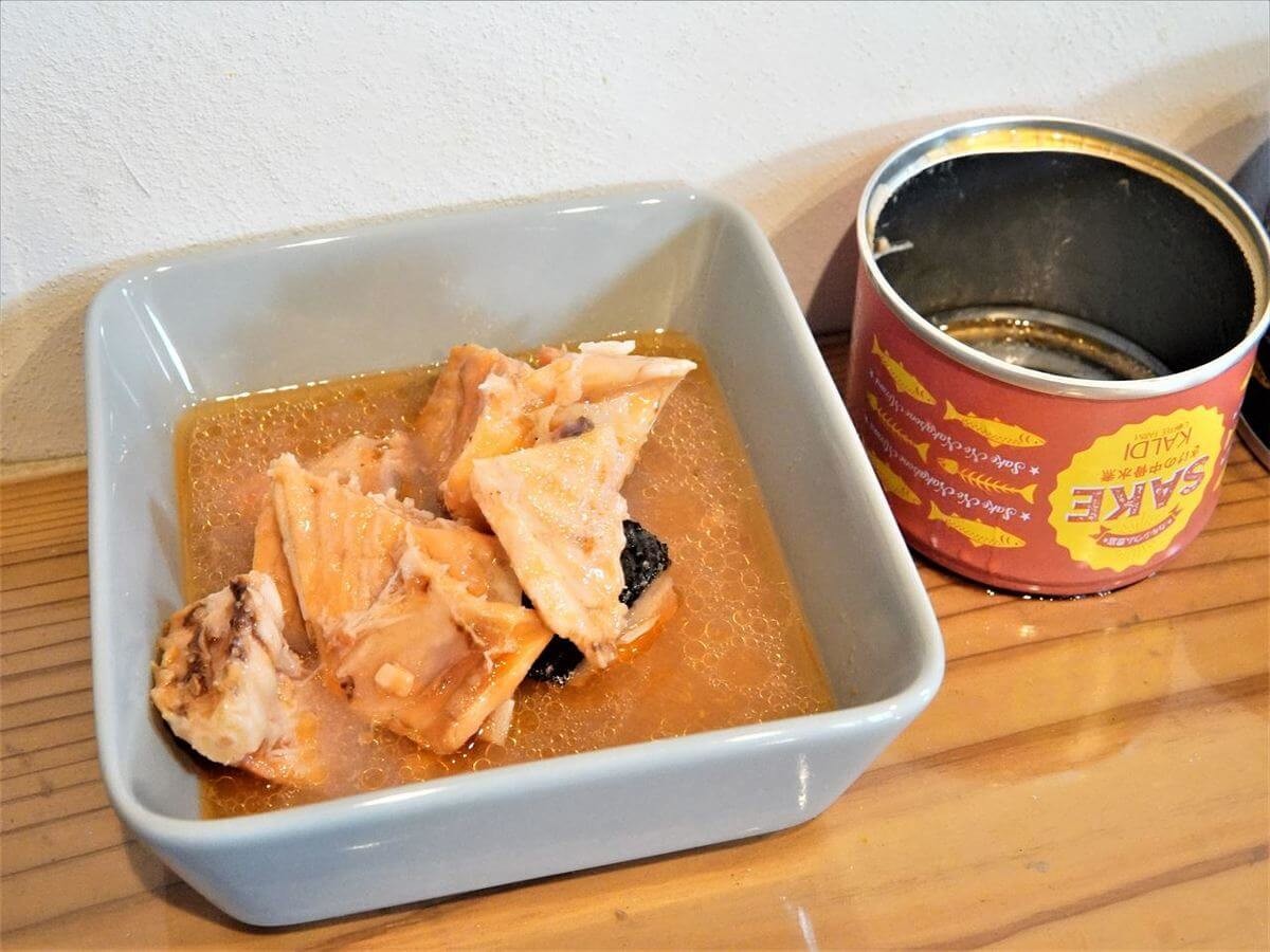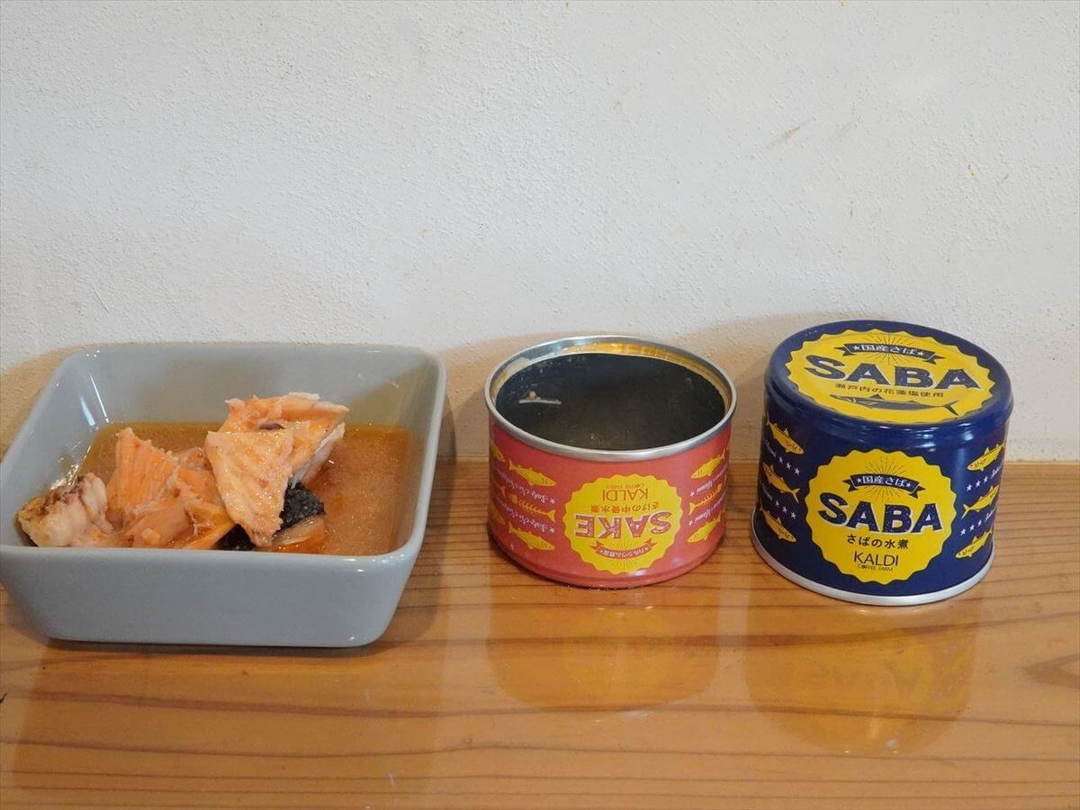 私のお気に入りは、カルディオリジナル缶のサバの水煮缶やサケの水煮缶です。