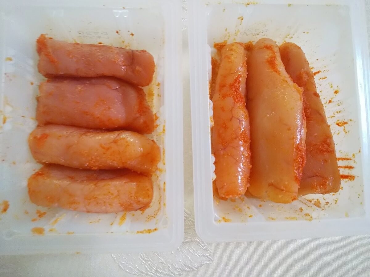 左側は小さめ、右側は大きめの明太子が入っているパック。かなり大きさに違いがありますよね。