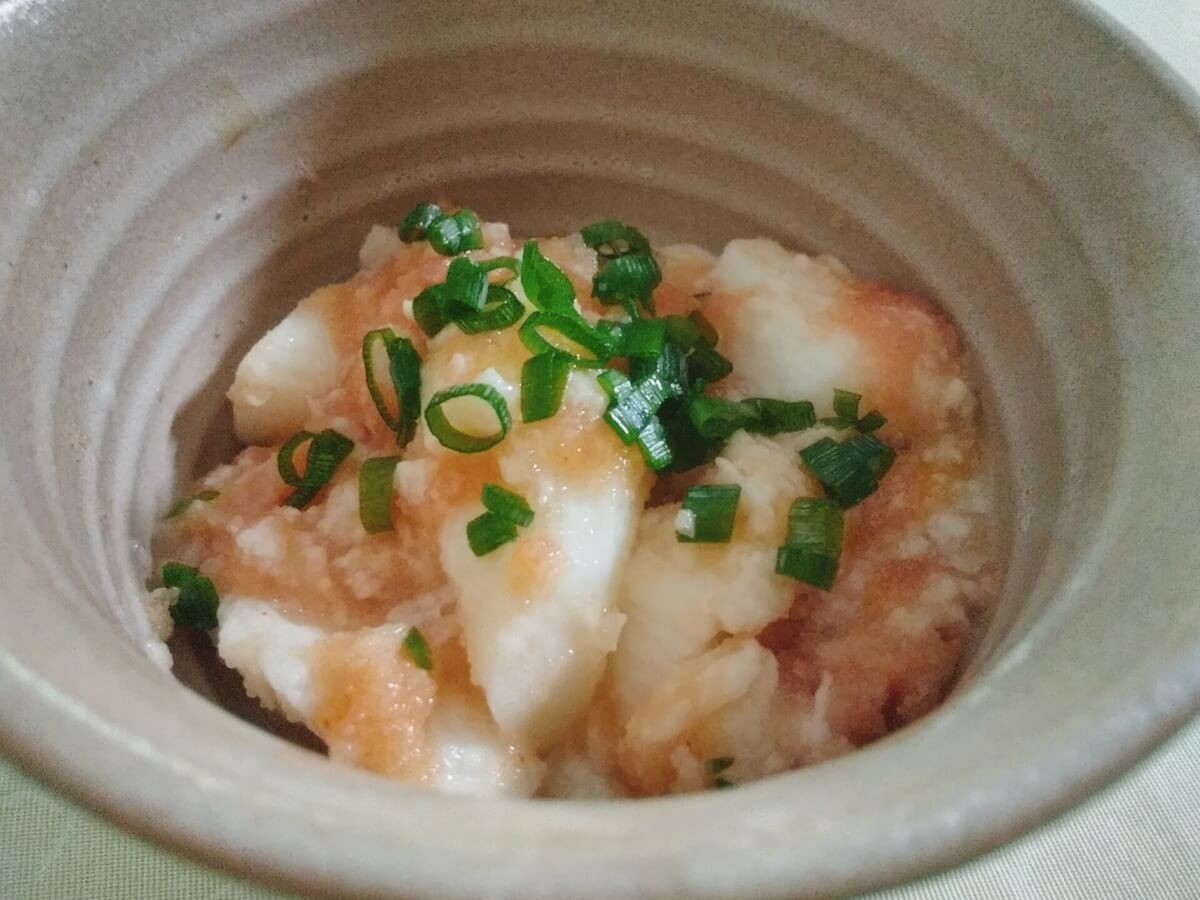 - 長いもとほぐした明太子を混ぜ、柚子胡椒を少量入れて味付けをします。しょう油はお好みで加えてください