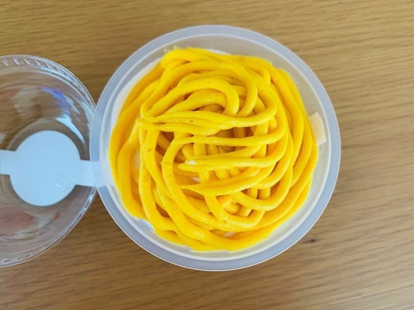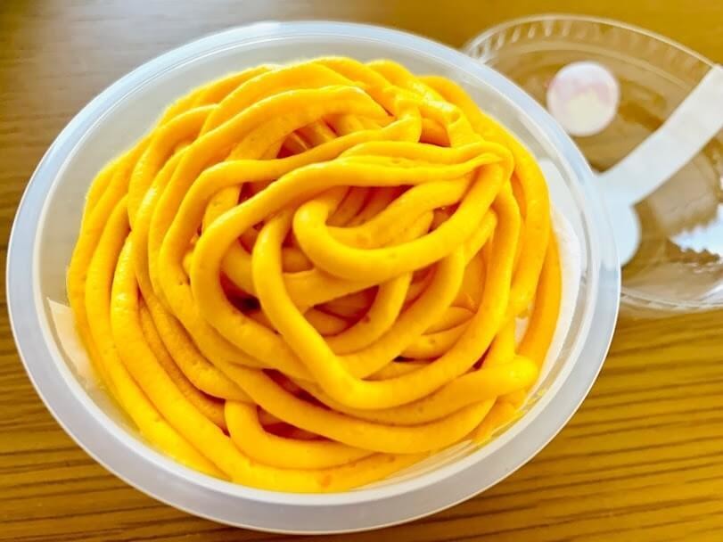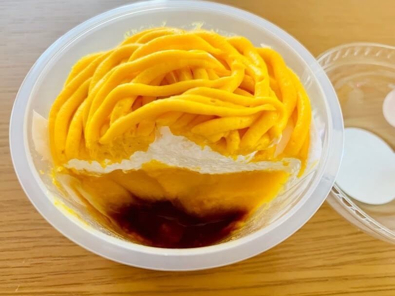 山形に盛られており、その傾斜の上にかぼちゃクリームが乗っている感じです。クリーム好きには嬉しいサプライズ!
