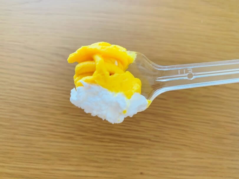ホイップクリームは柔らかくなめらかな食感。ショートケーキのクリームのように舌ざわりが優しいです。ミルキーでかぼちゃクリームと合わせるとよりかぼちゃクリームをまろやかにしてくれます。
