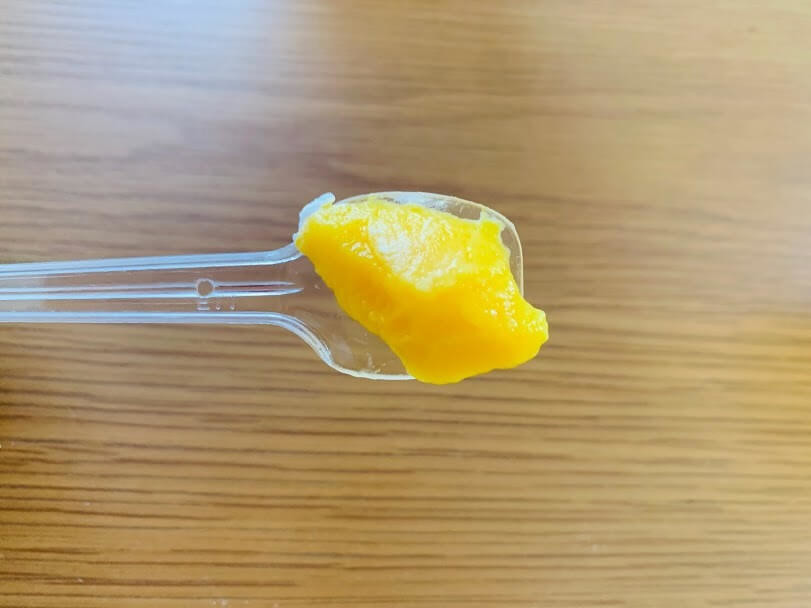 結構苦めですね!液体タイプなので、スプーンを挿すと一気に出てきます。このほろ苦さがプリンの味を際立たせてくれます。一緒に食べることで大人も嬉しいいほろ苦プリンに♪下に行くほど苦みを感じられる、まさに大人の階段のぼる(くだる?)プリンです。