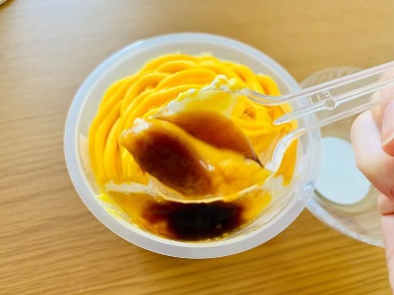 おお!同じかぼちゃ味でも、こちらはプリンなので卵の味も感じられます。一番上のかぼちゃクリームとはまた違うかぼちゃ味!より洋菓子っぽい風味です。