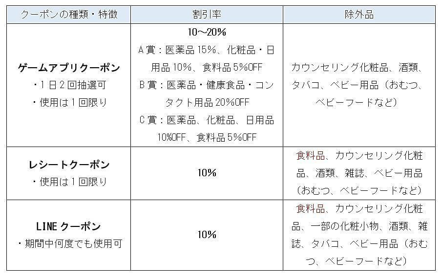 クーポン種類別に「割引率」「除外品」まとめてみた!
