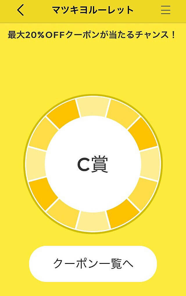 アプリ内のルーレットを回すと、最大で20%OFFのクーポンがゲットできることもあります!