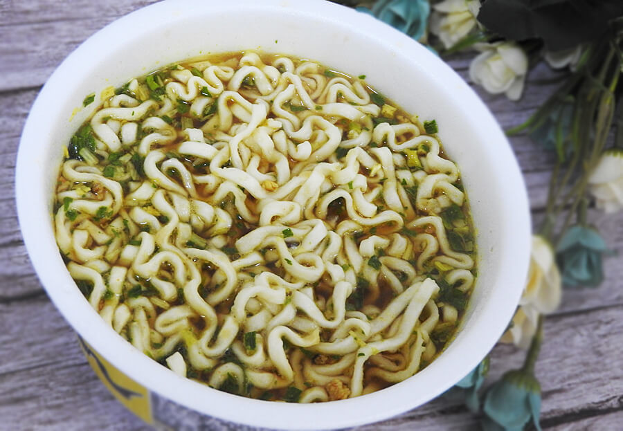 焼きそばの麺はややもっちりとしていて、かやくと粉末ソースがしっかりと馴染んで「これぞカップ焼きそば!」とおいしくいただけました。