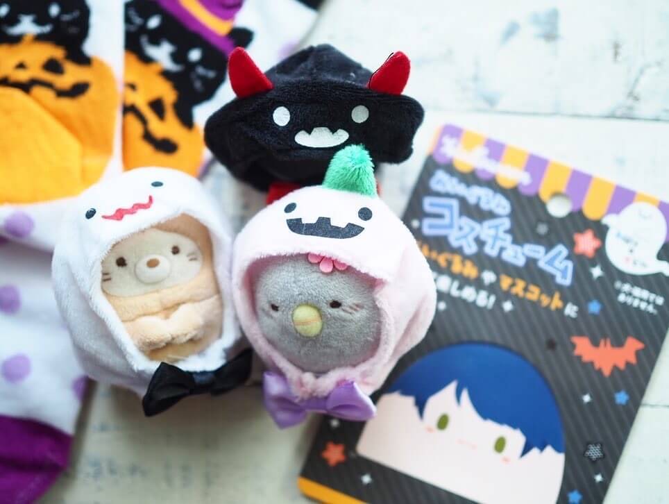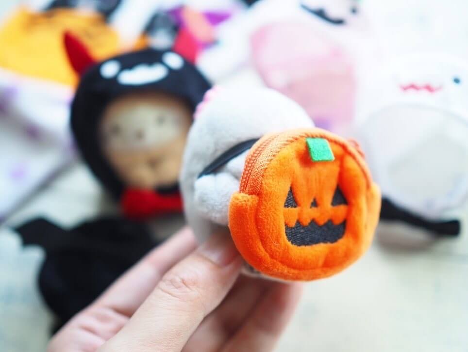 白や黒のモノトーンカラーがおしゃれなデビルや、ピンクのかぼちゃなど、被るだけでいつものぬいぐるみがハロウィン仕様に大変身♪