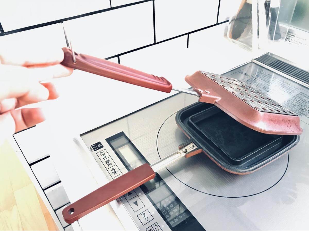 ちなみに、こちらは私がいつも使用しているホットサンドメーカー。食パン2枚の間に具を挟み、IHで加熱します。
