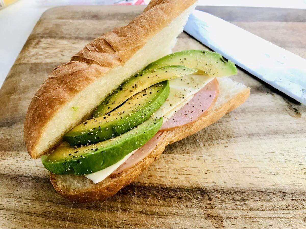 食パン2枚の中に、スライスチーズとハム・アボカドを挟み、塩胡椒で味付けをして加熱します。