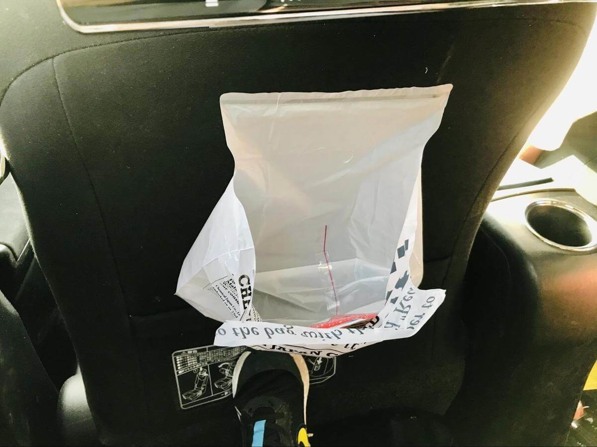 我が家では、どこでもペタッとゴミ袋を車の中に常備しています。