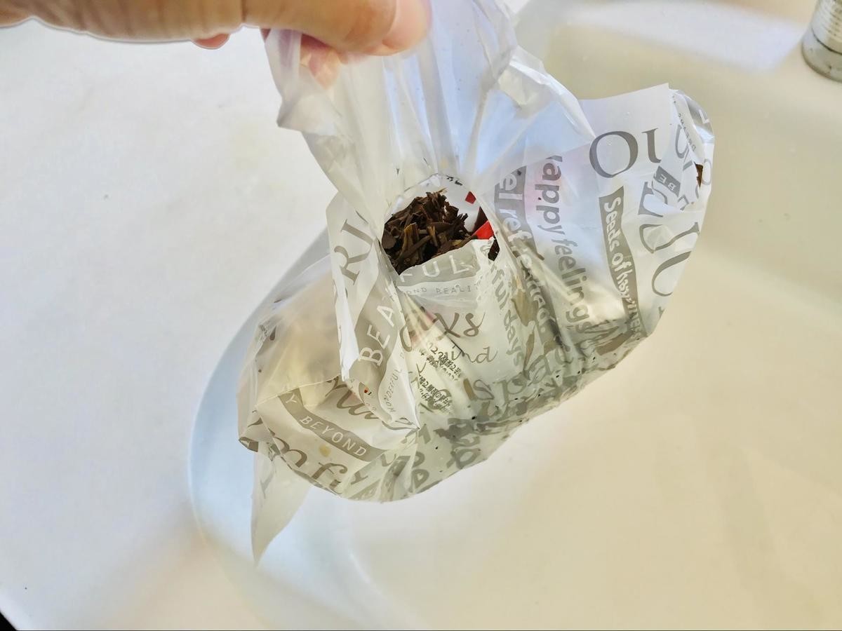 こちらのゴミ袋はそれほど大きくないサイズ感なので、5人家族の我が家では料理のたびに袋を変える必要があります。