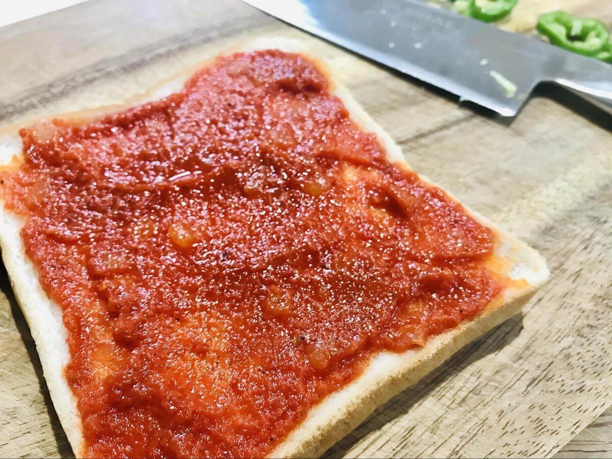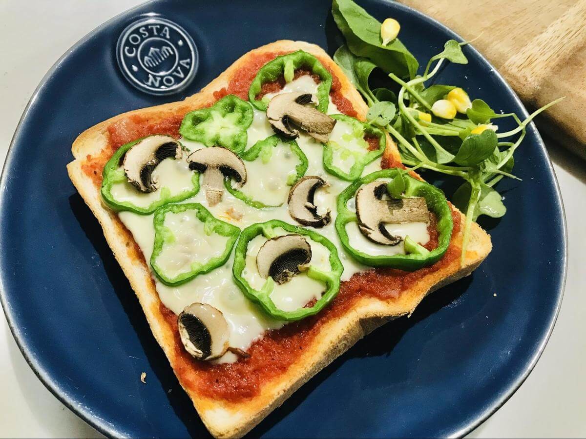 食パンにパスタソースを適量塗り、チーズやお好みの野菜を乗せてトースターで焼くだけできるため、料理が苦手な人や忙しい朝にもぴったり♪