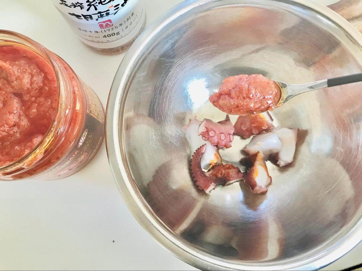 二つ目にご紹介するのは、トマトソースと茹でタコを混ぜ合わせるという超シンプルなアレンジレシピです。