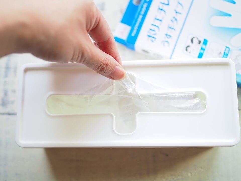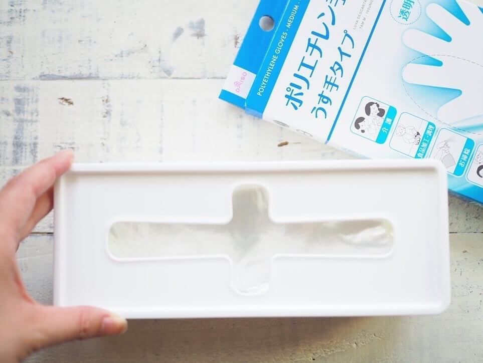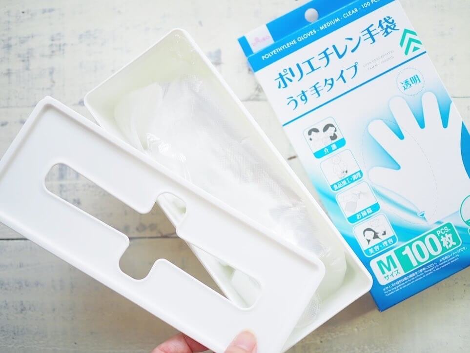 先ほど紹介した「ポリエチレン手袋 うす手タイプ」も100枚入り1箱を全て収納することができます。