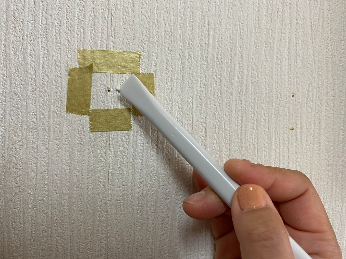 クロスとの色の違いがやはり目立つものの、穴自体はしっかり埋まりました!乾いた後に穴の部分を触ってみても大丈夫!凹むことはありませんでした。