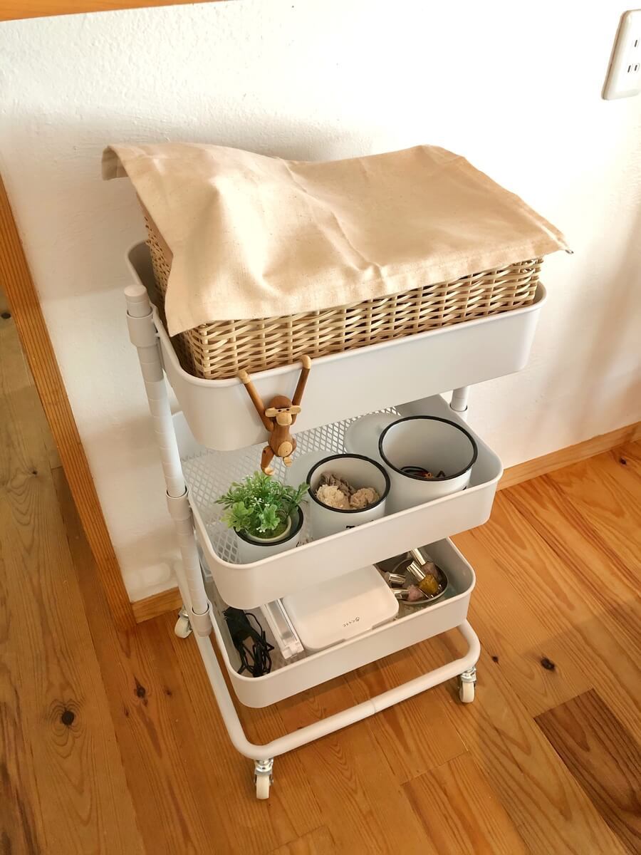 リビングや子ども部屋など必要な場所に自由に移動できるワゴン。最近ではIKEAワゴンで話題になった「ロースコグ」が有名ですね。