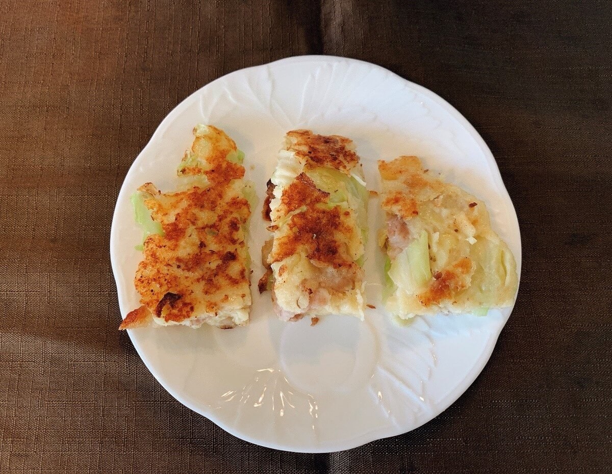 また、お好み焼きを切る時に、まな板にクッキングシートを敷いてお好み焼きを置いていたのは、まな板を洗わなくてよくするためのプチ時短ワザなので、こちらも参考にしてみてください。