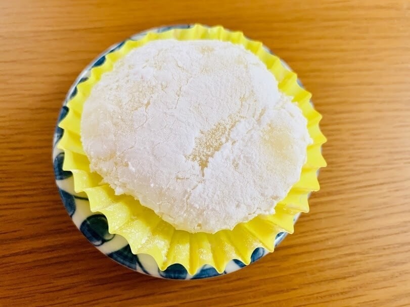 葛モチがくっつかないためですね。よく大福なんかにもかかっていますね。大きさは約6cmほどです。
