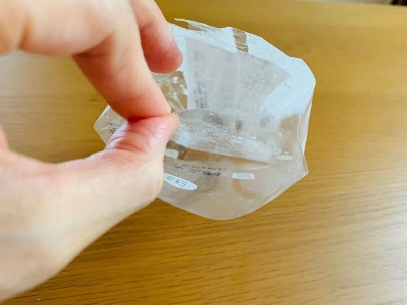パッケージにくっつかないように、外装と葛モチの間に一枚ビニールフィルムが。さすがの配慮です。